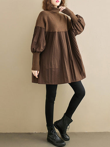 Strickfalten Split-Gelenk-Pullover-Oberteil mit hohem Hals