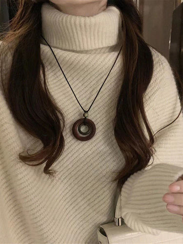 Lange Ärmeln lose asymmetrische feste Farbmerze hohe Hals -Strick -Pullover Pullover Tops