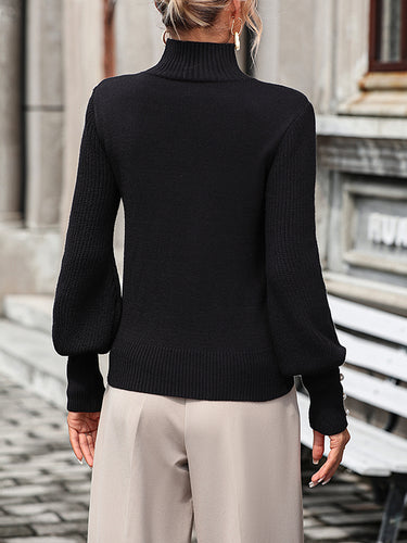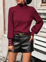 Lange Ärmeln lose Perlen mit hohem Hals-Strickpullover Pullover Tops mit hohem Hals-Strickwarenpullover