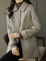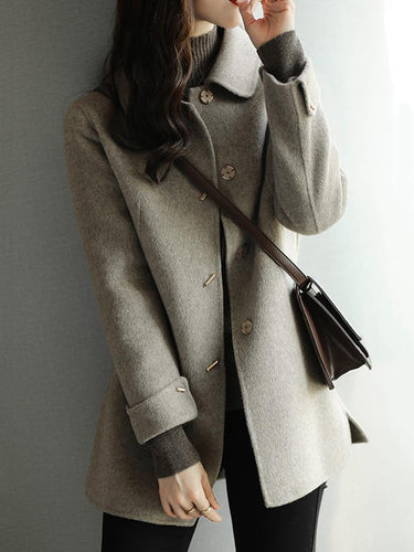Lange Ärmeln lose geknöpfte Taschen Feste Farbgelteur Wollmantel