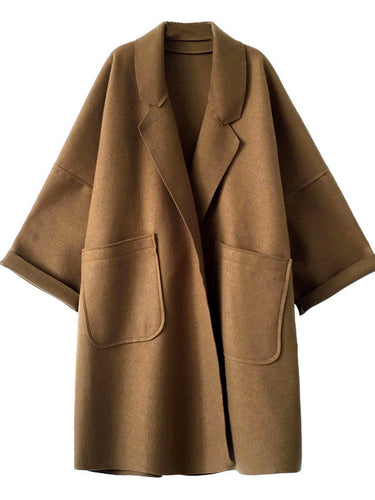Lange Ärmeln lose geknöpfte Taschen Feste Farben Split-Gelenk gekerbte Kragen Wollmantel