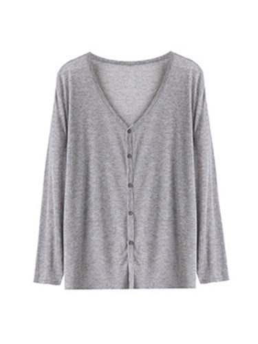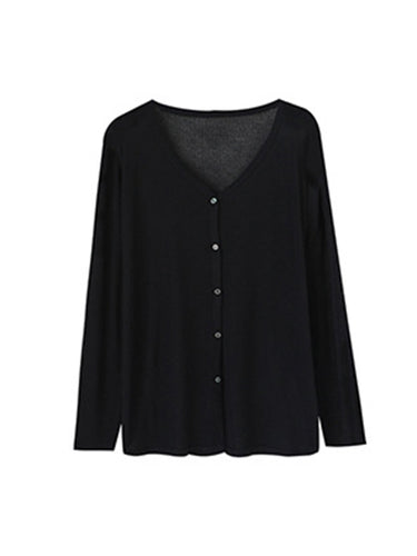 Lange Ärmeln lose geknöpfte feste Farbe Sonnenschutz V-Ausschnitt Strickjacke Tops