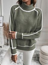 Lange Ärmeln lose Kontrastfarbe Split-Gelenk hoher Nackenpullover Tops