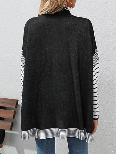 Lange Ärmeln lose Kontrastfarbe gestreifter Scheinhals Pullover Pullover Tops