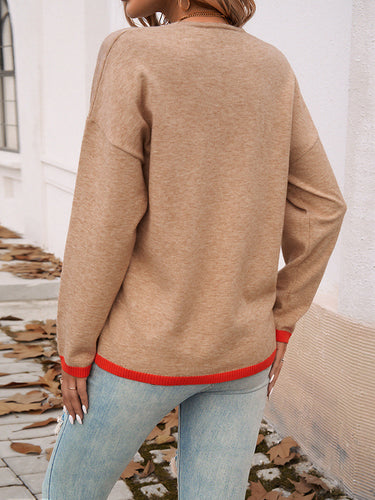 Lange Ärmel lose Kontrastfarbe V-Ausschnitt Pullovers Pullover Tops