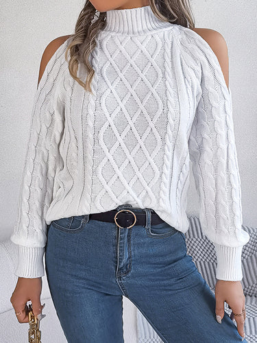 Lange Ärmel lose hohle, feste Farbe kalte Schulterpreispullover Pullover Tops