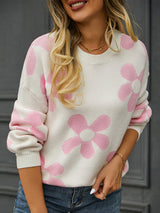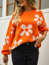 Lange Ärmeln lose Strickblüten rund-Hals-Strickputzpullover Pullover Tops