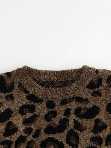 Long Sleeves Loose Leopard Round-Neck Sweater Tops