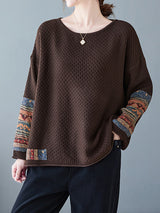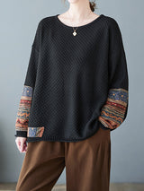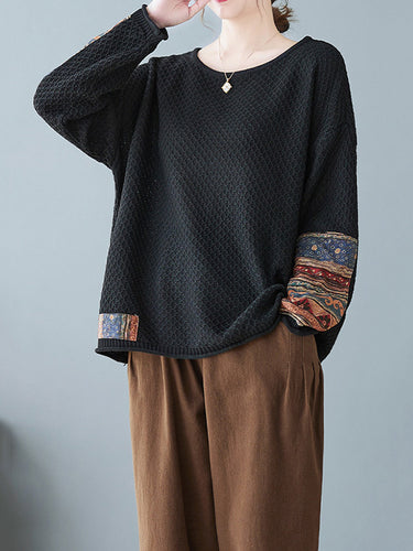Langhülle lose gedruckte Split-Gelenk-Pullover-Pullover-Pullover-Tops