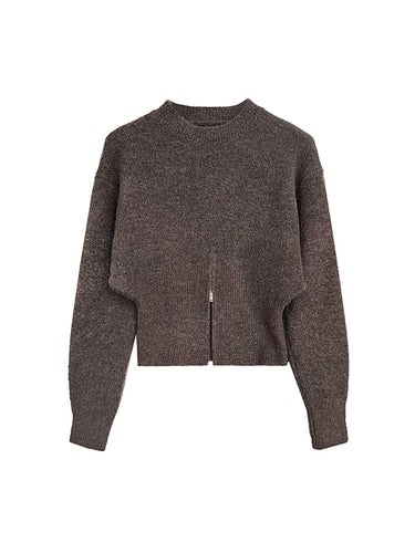 Lange Ärmel losen feste Farbe Reißverschluss Mock Neck Pullover Pullover Tops