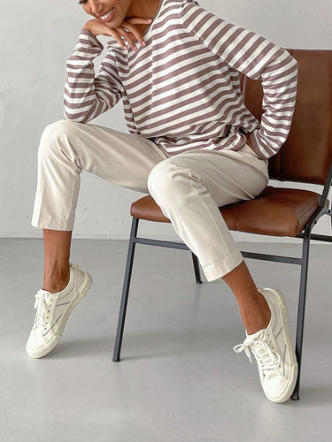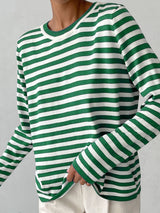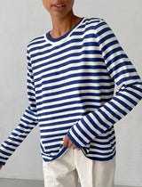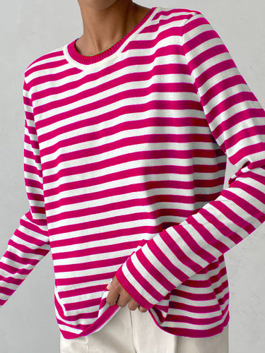Lange Ärmeln lose Split-Gelenk-Streifen mit rundem Hals-Pullovertops