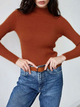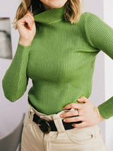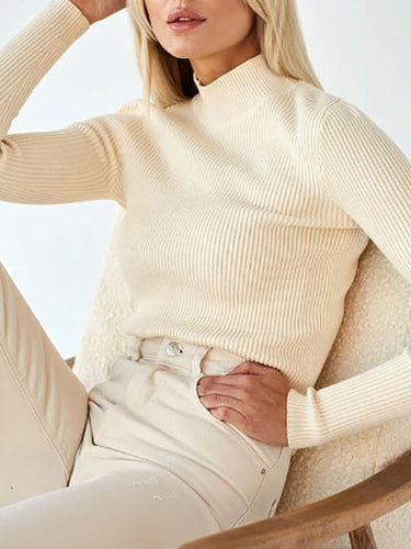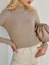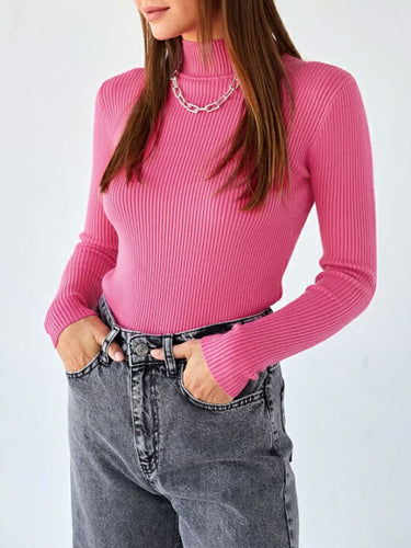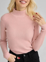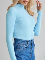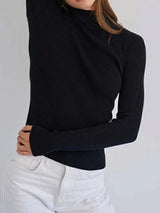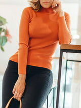 Langarmes dünne, feste Farbe Split-Gelenk hoher Nackenpullover Tops