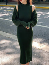 Langarmes Festkörper -Mock -Hals -Strickjacke Top + hoher Taille -Pullover Kleid Zwei Stücke Set Set