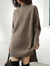 Lose lange Ärmel Kontrast Farbe halbe Rollkragenpullover -Pulloverkleider