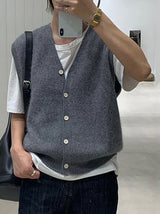 Losen ärmelloses geknöpfter V-Ausschnitt Strickwege-Weste Oberbekleidung