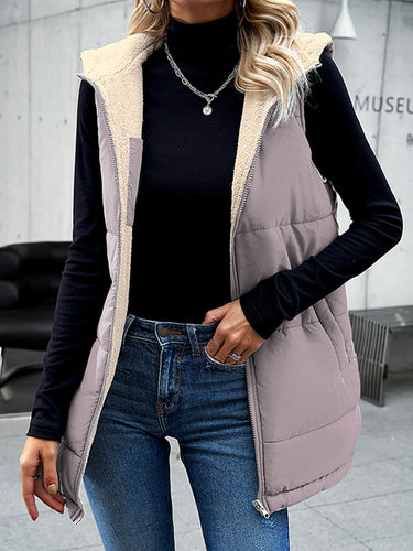 Lose ärmellose Taschen stapfen reversibler Reißverschluss mit Kapuzenpolsterweste Weste Oberbekleidung