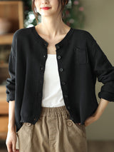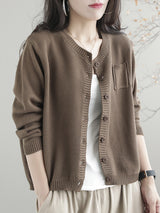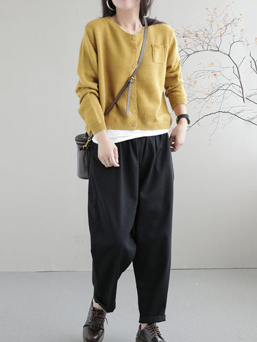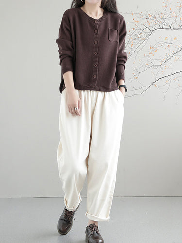 Einfache lose lange Ärmeln geknöpfte, feste Farbdicks rund-Hals-Strickjacke