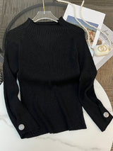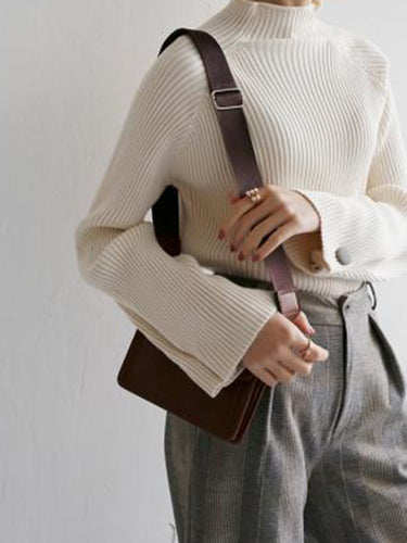 Einfacher loser, fester Farbpullover mit hohem Hals