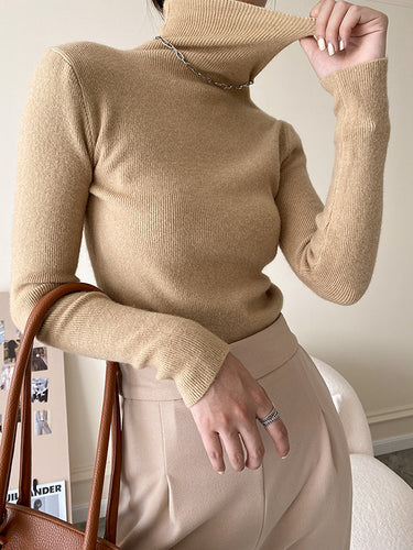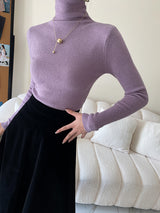 Einfache dünne lange Ärmeln mit hohen Pullover mit hohen Farben