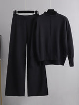 Stilvolle hohe, lange Ärmel geteilte, feste Halbschildkragenpullover-Pullover-Tops und Weitbeinhosen Zwei Stücke Set