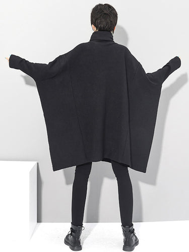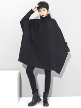 Super lose schwarze schwarze Strick-Strick-Fledermaus-Ärmel-Pulloverkleid