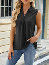 Lose ärmellose plissierte Festfarb-Split-Geleer-Revers-Weste