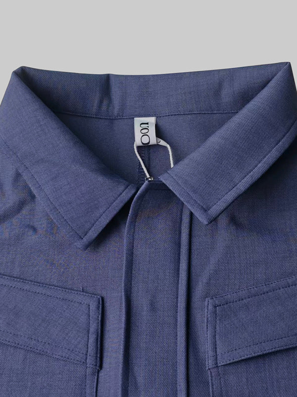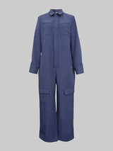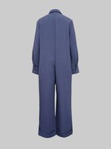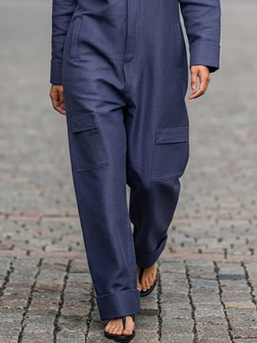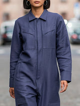 Long Sleeves Loose Solid Color Zipper Lapel Jumpsuits