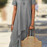 Plus-Größe kurze Ärmeln asymmetrische Festfarb mit Split-Gelenk mit rundem Hals Midi-Kleidern