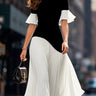 Flared Sleeves halbe Ärmel plissierte Split-Gelenk-Runde-Hals-Midi-Kleider