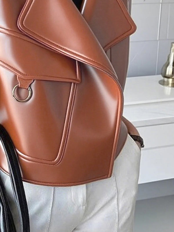 Long Sleeves Loose Buttoned Solid Color Lapel Outerwear