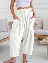 Säule lose Elastizität Taschen Feste Farbe Casual Hosenboden Hose