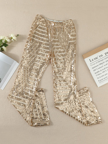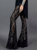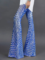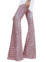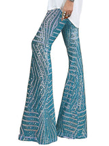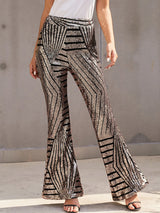 Flared Hosen hoher taillierter Kontrastfarbe Streifte Paillettenhosen
