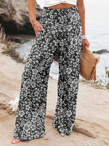 Hohe taillierte lose Elastizitätsblütendruckfalten Taschen Hosenhosen Hosen