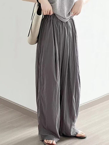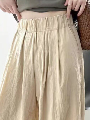 Hohe taillierte lose Elastizität plissierte Taschen Feste Farbhosen Hosen