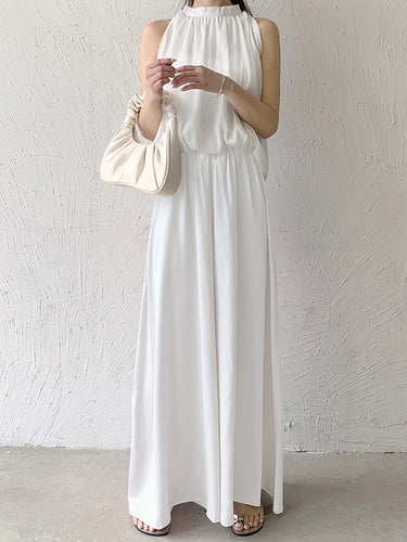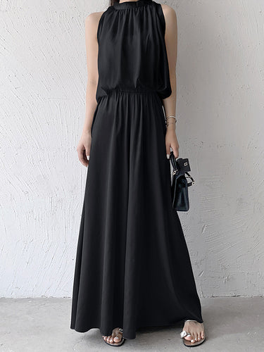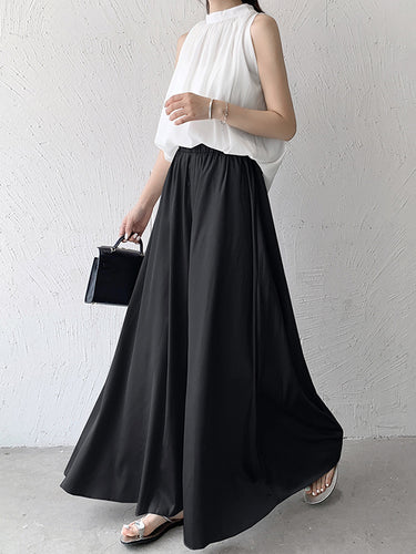 Hohe taillierte lose Elastizität plissierte Feste Farbe Culotte Hosen