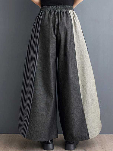 Hohe taillierte lose Elastizitätstaschen geteilte Hosenhose mit gestreiften Hosen