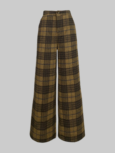 Hohe taillierte lose Plaid-Split-Gelenkhosenhosen