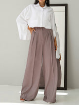 Hohe taillierte lose plissierte fehlfarbene Farbfarbhose mit Split-Gelenkhose