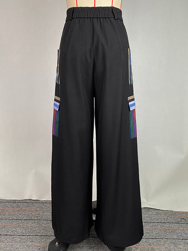 Hohe taillierte lose Taschen geteilte Streifenhosen mit gestreiften Hose