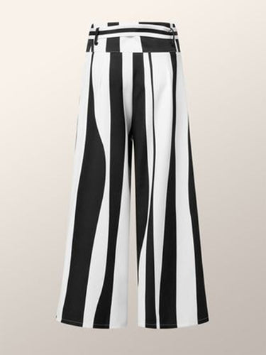 Hohe taillierte lose Stripe Bindet Taille Hosenhosen Hose