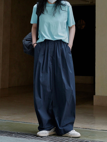 Hohe taillierte Weitbein plissierte Casual Hosenboden Hosen