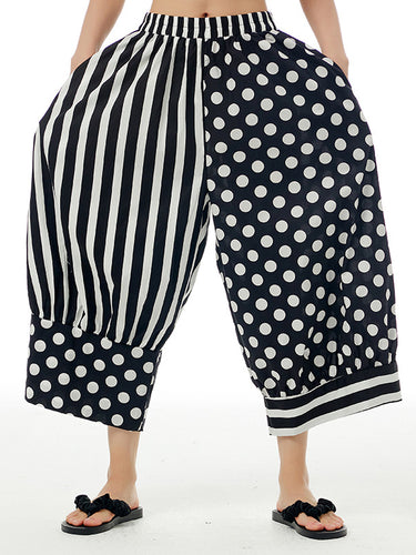 Lose Weitbeinkontrast Farbe Elastizität Polka-Punkt Split-Gelenk Streifenhose Hosen Hosen
