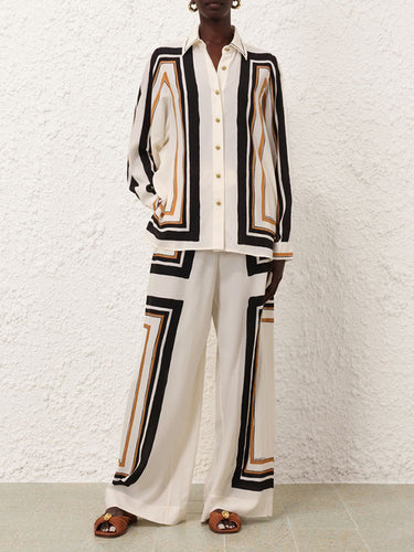 Loose Wide Leg Plaid Striped Tied Waist Casual Pants Bottoms Trousers