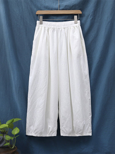 Einfache lose Leinen Feste Farbe Falten -Kordelbreite Beine Knickerbocker