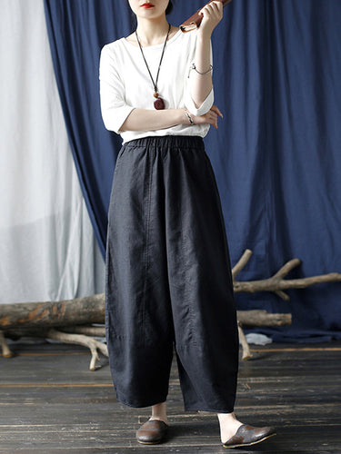 Einfache feste Farbelastizität taillierte Weitbeinhosen