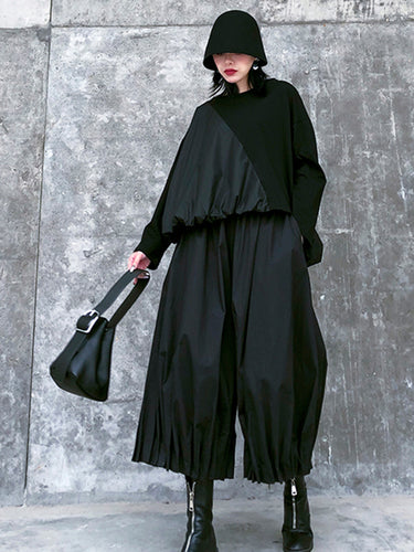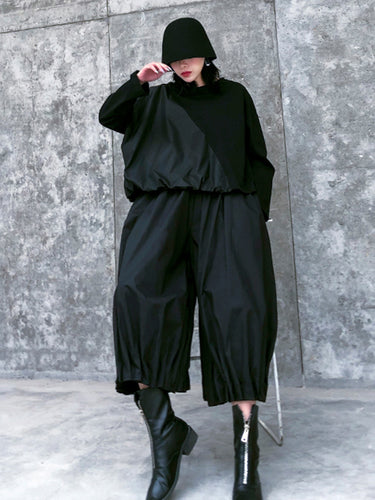 Stilvolle schwarze, feste Farbe mit hoher Taille Wide Bein Hosen