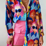 Lange Ärmel lose geknöpfte Figur gedruckte Reversblusen und Hemden Tops