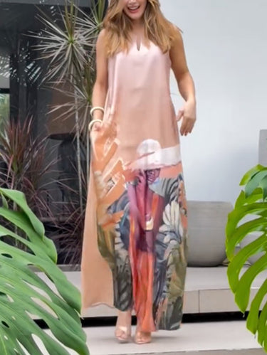Lose ärmellose Figur Taschen V-Ausschnitt Maxikleider