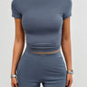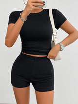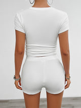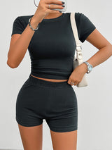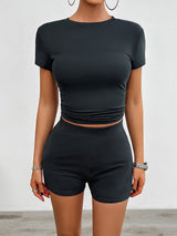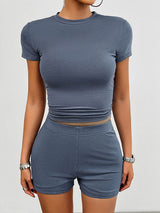Kurze Ärmel dünne, feste Farbfarbe mit T-Shirt Top + Shorts untere zwei Teile gesetzt