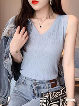 Ärmellose farbene strukturierte v-heck-Weste mit V-Ausschnitt